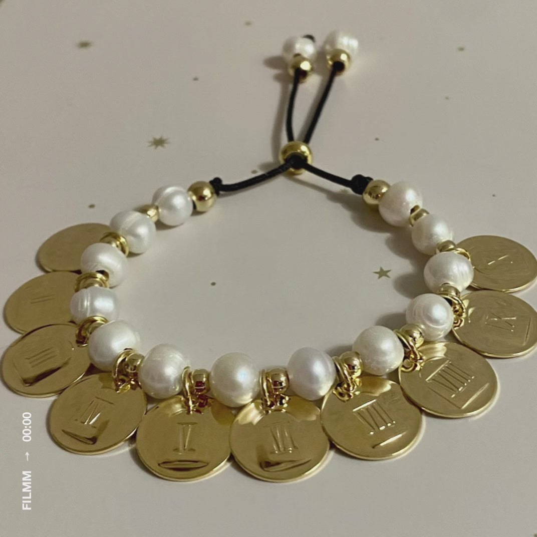 Pulsera dijes de baño de oro y perlas